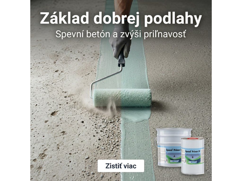 - Pod epoxidové nátěry a stěrky – systémy Epoxol, Neopox, Neodur. Primer zajistí perfektnú přilnavost dalších vrstiev k betonu.