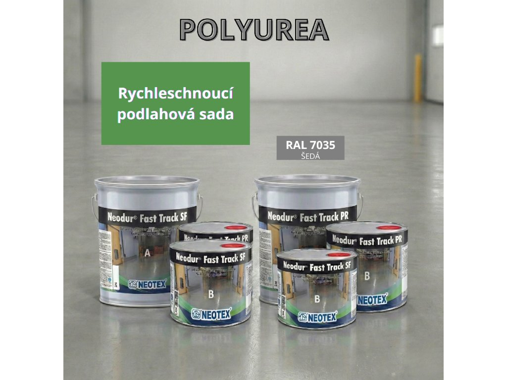 - Neodur Fast Track SF – rychleschnoucí polyurea – hlavní nátěr s bleskově rychlým schnutím a vysokou odolností.