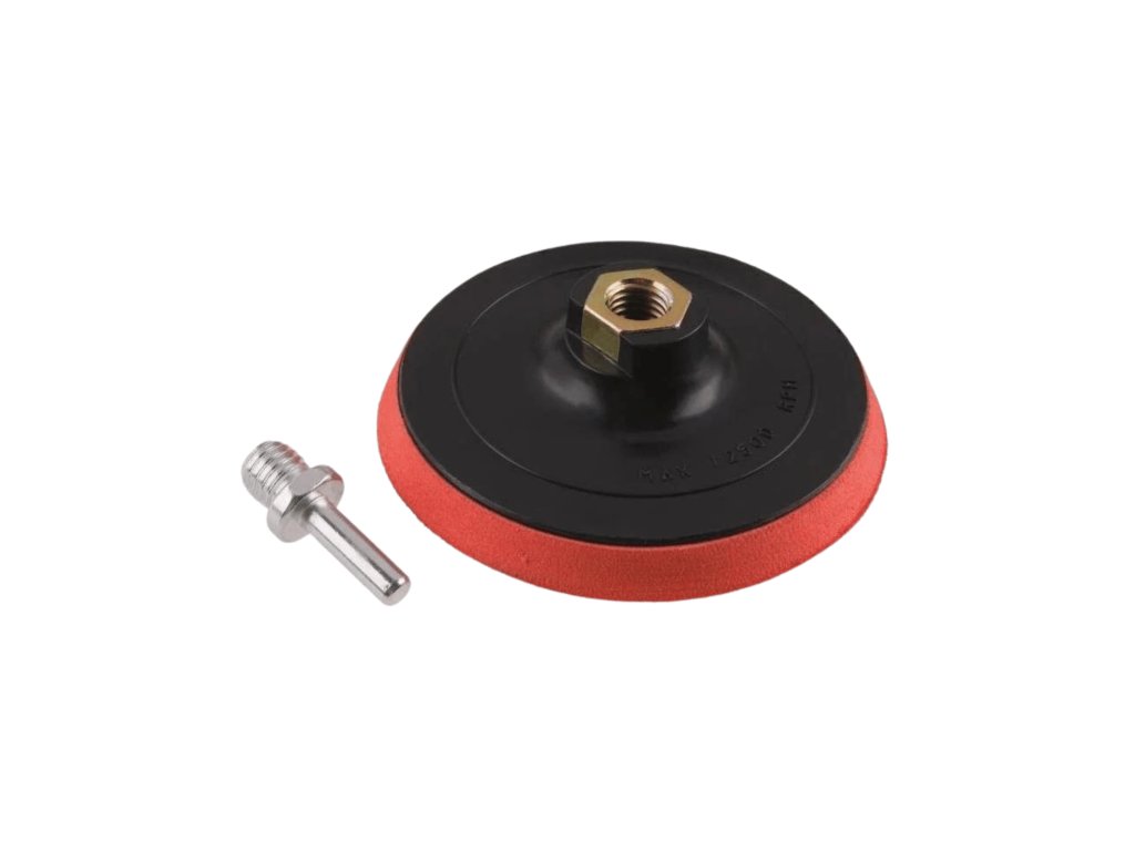Držák brusného kotouče se závitem M14, 8mm stopka, zapínání na suchý zip, průměr držáku 125 mm.